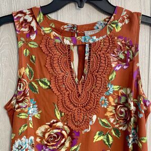 Daniel Rainn Rust Orange Floral Sleeveless top PS NWOT