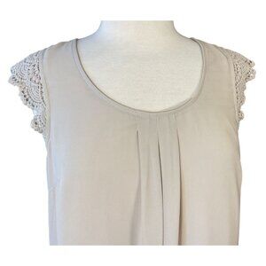 Daniel Rainn Scoop Neck Crochet Cap Sleeves Front Pleat Detail Lined Top Medium