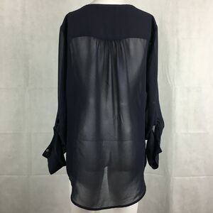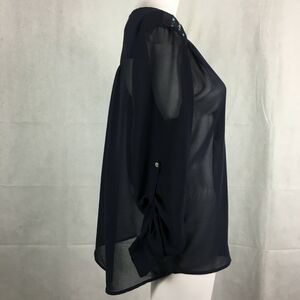 Daniel Rainn Shirt Womens Sz M Navy Blue Boho Chiffon Roll Tab Sleeve Tunic Top