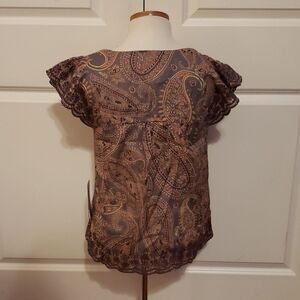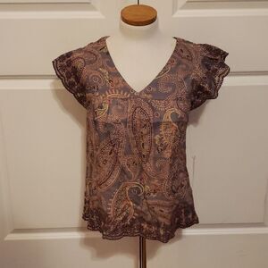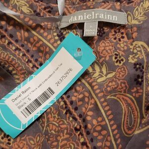 Daniel Rainn Short Sleeve V Neck Embroidered Trim Top Sz Small