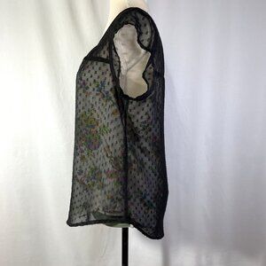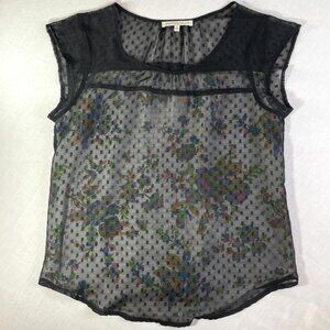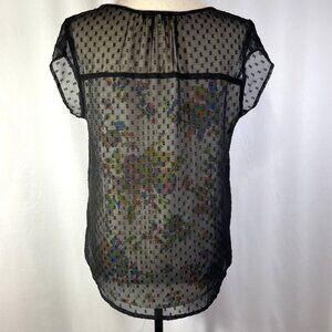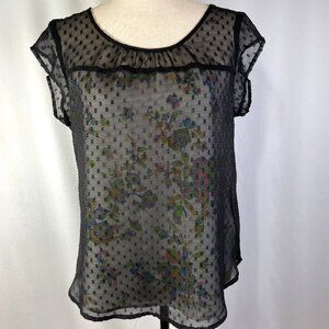 Daniel Rainn Size M Short Sleeve Top Blouse Floral Sheer Polka Dot Overlay