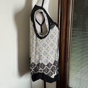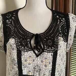 Lightweight and perfect for the summer. Has crochet details at the top and flows towards the bottom. Has a tie at the front. In great used condition, no flaws or damage to note.