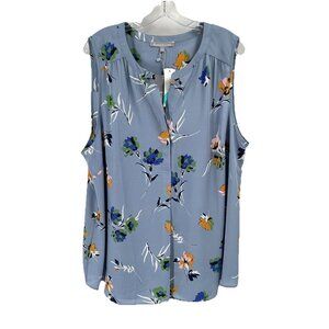 Daniel Rainn Stitch Fix Baby Blue Floral Sleeveless Blouse Sz 2X NWT