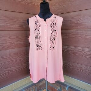 Daniel Rainn Stitch Fix Pink Lace Crochet Sleeveless Tank Top Women's Medium EUC