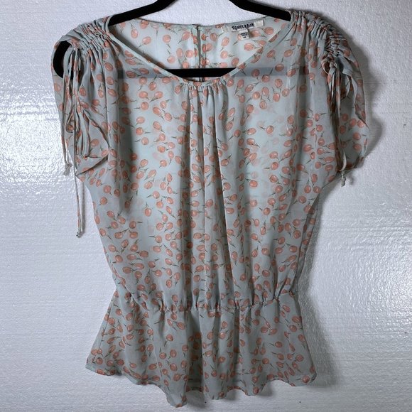 Daniel Rainn Women's Size XS Cherry Novelty Print Peplum Gathered Top Blouse