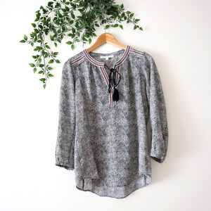 Daniel Rainn Tassel Tie Black & Beige 3/4 Sleeve Polyester Top Size Small