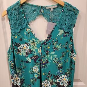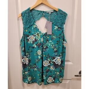 StitchFix Daniel Rainn Teal Floral Blouse with Lace Detail