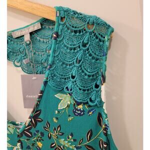 Daniel Rainn Teal Floral Peek a Boo Lace Blouse
