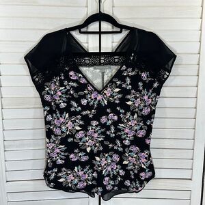 Daniel Rainn Top Medium Black Floral Cap Sleeves NWOT