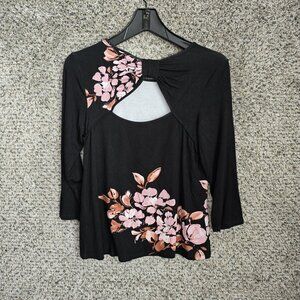 Daniel Rainn Top Womens PS Petite Small Black Floral Print 3/4 Sleeve Casual