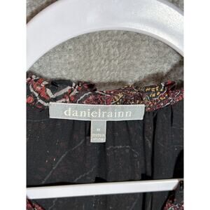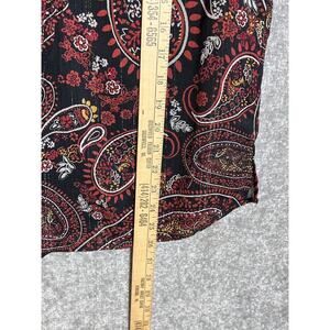 Daniel Rainn Top Womens Size Medium Black Red Paisley Sleeveless Ruffle Pintucks