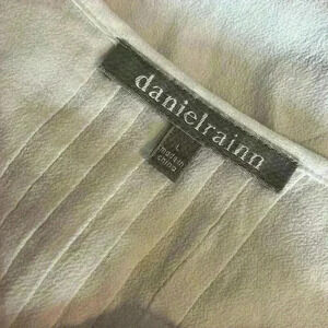 Daniel Rainn White Blouse Pin-tuck Bodice Tassel Tie Font Lace Trim Size Large