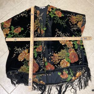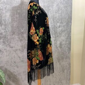 Daniel Rainn Women M ( will fit a variety of sizes S-XL, my opinion) Velour Boho Open Front Cardigan Kimono Topper Fringe Hem