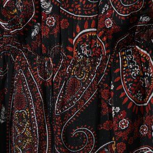 paisley mini dress, bohemian shift dress, crochet detail dress, casual printed dress, cap sleeve dress, Daniel Rainn dress, split neck dress, polyester blend dress, NWT