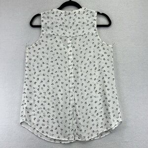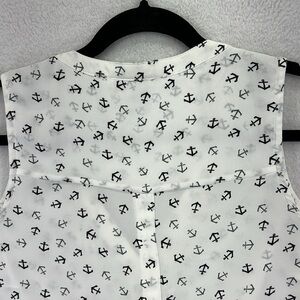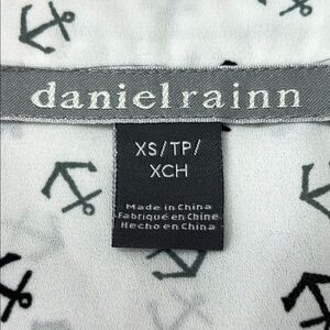 Daniel Rainn Women’s Blouse Sz XS White w/Navy & Gray Anchors 100% Polyester EUC
