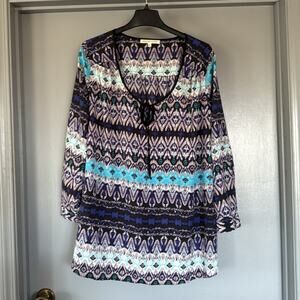 Daniel Rainn Women's Blue Pullover Top Long Sleeves Roll Tab sz 2X Scoop Neck