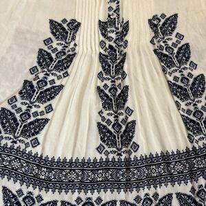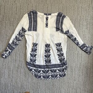 Daniel Rainn Women's Boho Hippie Blouse White And Blue Lightweight Semi Sheer M