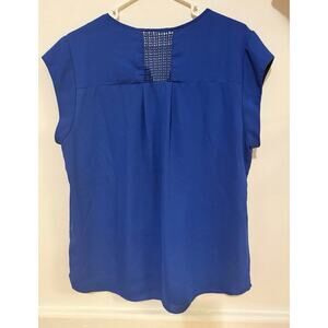 Daniel Rainn Women's Lace Detail Cap Sleeve Cobalt Blue Top Blouse SZ XL