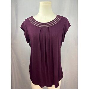Daniel Rainn Womens Petite Medium Plum Top With Keyhole Back & Pleated Front Des