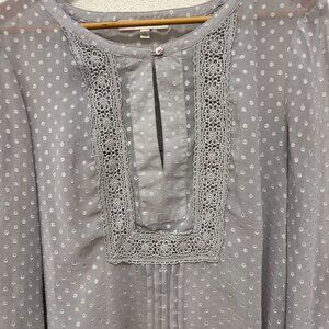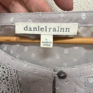Daniel Rainn Womens Polkadot Gray Textured Sheer 3/4 Sleeve Blouse sz Large