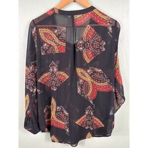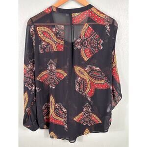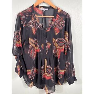 Daniel Rainn Women's Size Large Sheer Black Floral Breathable Long Sleeve Blouse