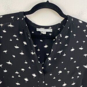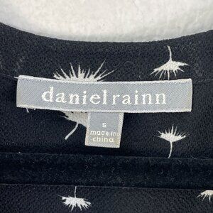 Daniel Rainn Womens Small Black Dandelion Floral Blouse 3/4 Roll Up Sleeve Shirt