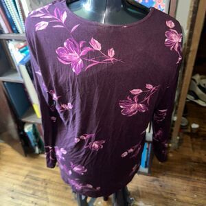 Daniel Rainn XL purple floral v-neck flowy boho blouse