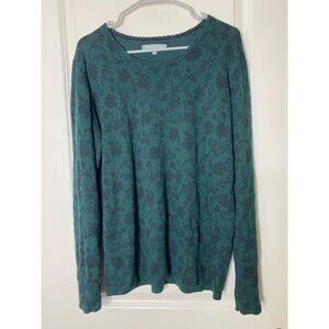 Soft cashmere-blend floral knit in a rich leafy green—romantic boho vibes with a cozy, luxe feel. Crew neckline, long sleeves, easy drape; cute with denim or a slip skirt. Women’s XXL. Excellent Pre-owned condition.