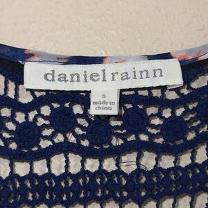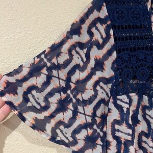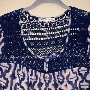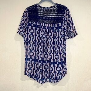 Daniel Rainn popover sheer Blouse crochet trim size small abstract ikat Boho