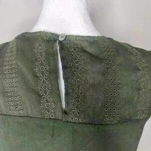 Daniel rainn women's sage green sleeveless blouse petite medium. Lace detail on shoulder. A bit of stretch to it. In excellent pre-owned condition. No flaws. Measurements are approximate and taken flat.