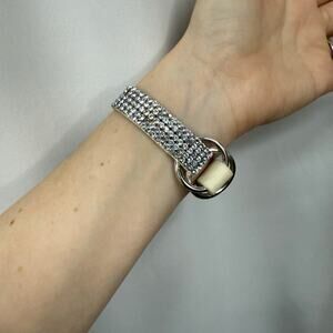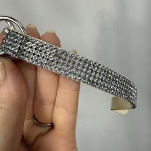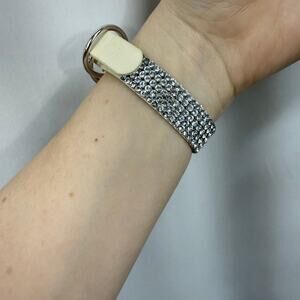 Daniel Swarovski Vintage 90s White Leather Clear Rhinestone Bracelet