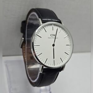 Daniel Wellington B15 Watch Silver Case Black Leather Strap New Battery Working