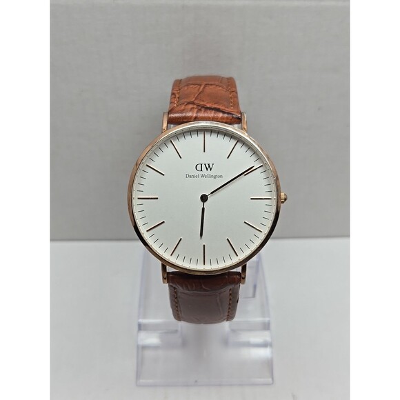 Daniel Wellington Classic 41mm Rose Gold Leather Quartz Watch New Battery Slim