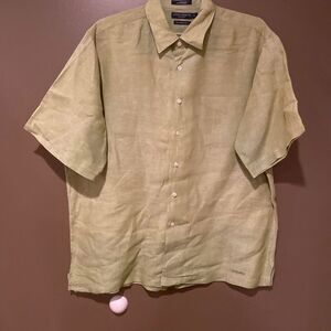 Daniel Cremieux 100% Linen Green Short Sleeve Shirt Fine Italian Fabric
