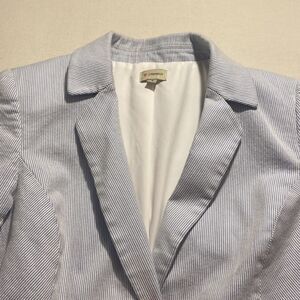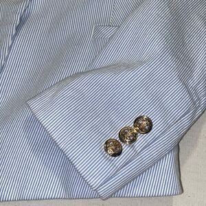 Daniel Cremieux Blue / White Seersucker Blazer Classic Tailored Cut Gold Buttons