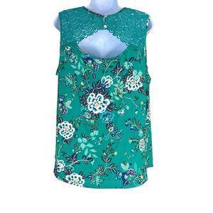 Daniel Rainn Womens Plus 2X Sleeveless Blouse Green Floral Lace Accents Cutout Back NWOT