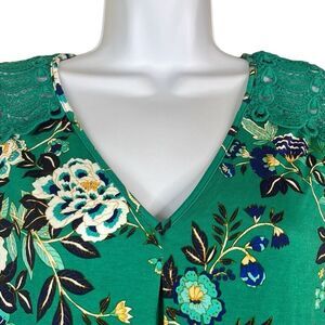 Daniel Rainn 2X Plus Sleeveless Blouse Green Floral Lace Accents Cutout NWOT