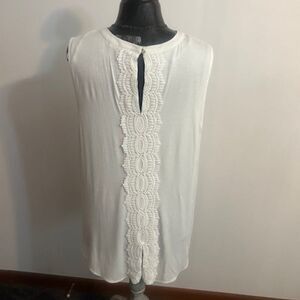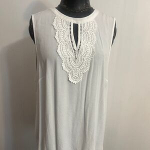 Daniel Rainn White Quin Keyhole Crochet sleeveless top, size XXL (100% rayon, Lace 100% Cotton) ***button missing, see picture 5***