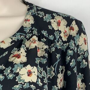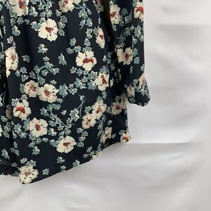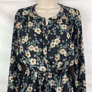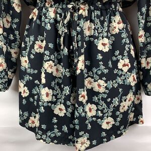 Daniel Rainn Black floral print long sleeve romper. Flap covers small metallic ball buttons.