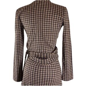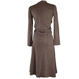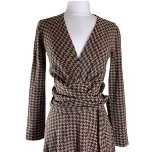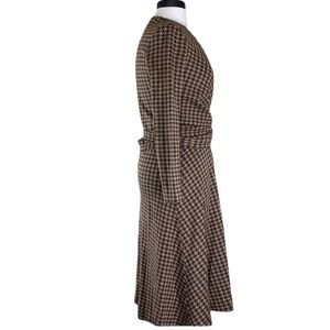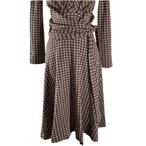 From designer Daniela Corte in Boston come this gorgeous brown and gold houndstooth long sleeve wrap dress. Fabulous.
