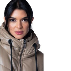 Daniela Cortez Eco Leather Puffer Jacket with Hood in Cognac