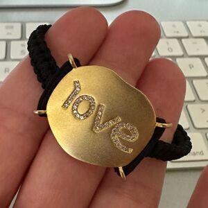 Daniela Swaebe 18k Yellow Gold Plated "LOVE" Cz with Black Macrame Self Tie Bracelet.