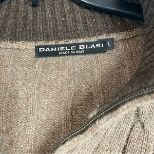 Daniele Blasi Wool Blend Ribbed Knit Henley Sweater Brown LG Large Quarter Zip