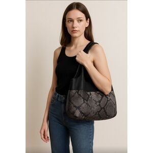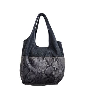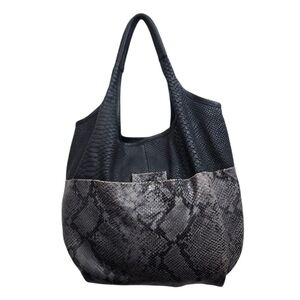 Daniella Lehavi Personals Oversized Snake Print Tote Bag Black Gray Leather