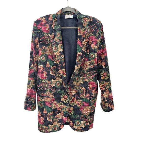 Danielle B Jacket Women M Pink Notch Blazer Floral Valentines Retro 80s Western
