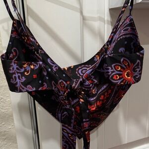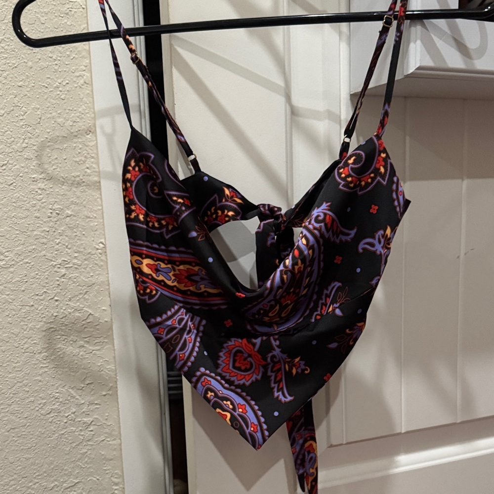 Stylish paisley bandana top with vibrant colors. Perfect for a chic look. Same style the black on my post .use once so it’s like new no tag