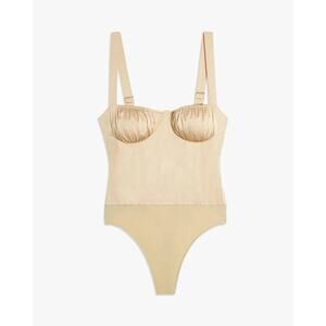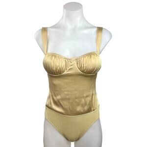 WeWoreWhat Danielle Bernstein Gold Satin Cami Camisole Sleeveless Tank Ruched Bustier Cups Corset Bodysuit Top 0