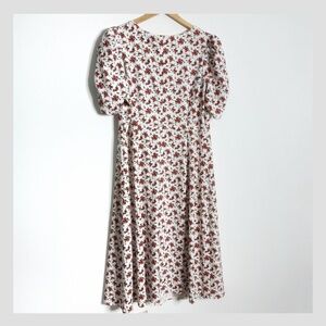 Danielle Bernstein Midi Length Dress Short Puff Sleeve Red White Flower Print