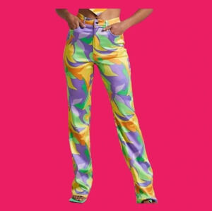 Danielle Bernstein we wore what ankle flare pant size 24 green/purple color It is in very good condition, it only has a small stain as shown in the last photo.from smoke and pet free home 0368