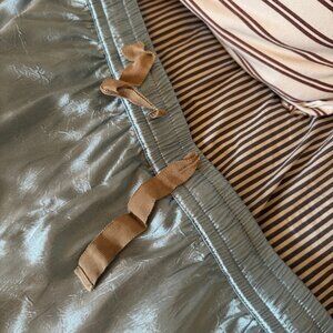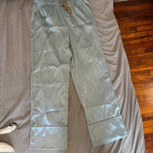 Pant - Crinkled charmeuse slim fit pant with piping detail. Elastic waist with contrast grosgrain tie. Wore this once for getting ready for my wedding! In pristine condition. Will offer discount if you buy this as a bundle with the lounge top.
